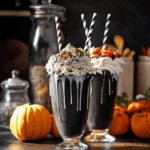 Looking for a drink that’s equal parts spooky and sweet? This Black Halloween Milkshake is the ultimate showstopper for your Halloween table. With its deep black color, creamy texture, and festive toppings, it’s perfect for kids’ parties, themed dinners, or just as a fun treat to get into the Halloween spirit.