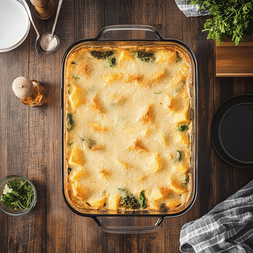 - Preheat oven: Set oven to 375°F (190°C) and grease a 9×13-inch baking dish.