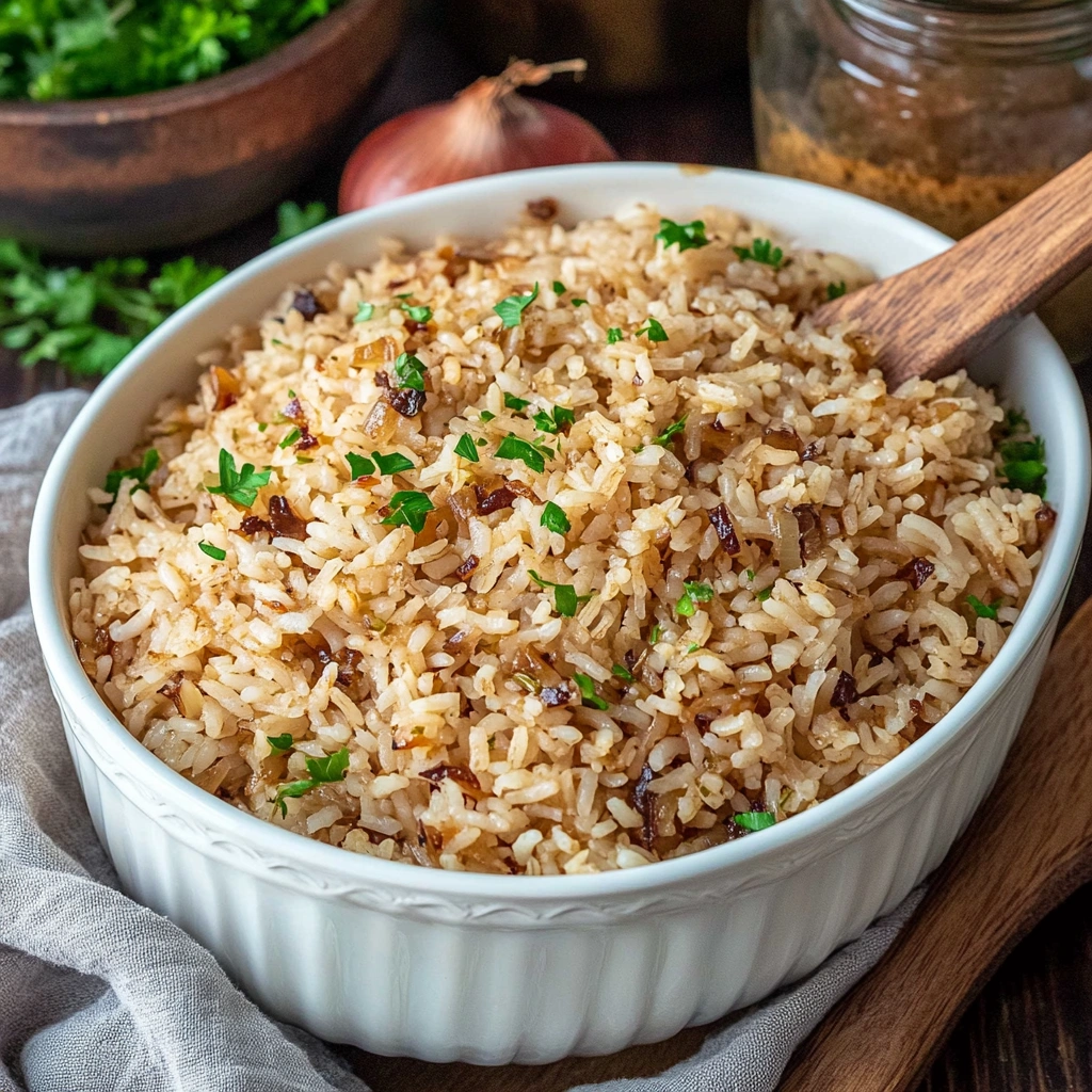 If you want even more flavor, consider sautéing a few sliced onions in butter and layering them on top of the rice before baking. This adds extra depth and texture. Or, sprinkle a bit of garlic or onion powder into the mix to enhance the savory profile.
