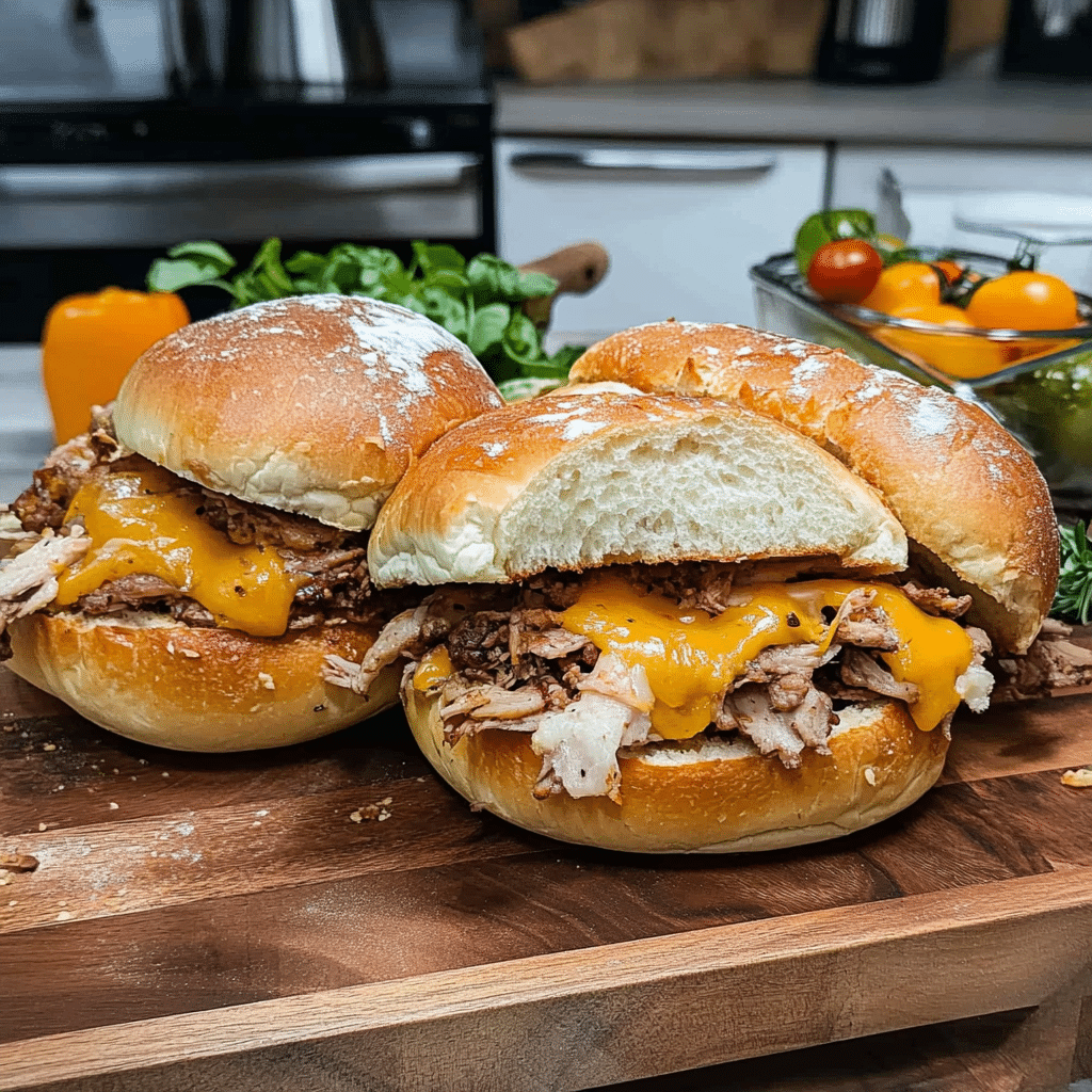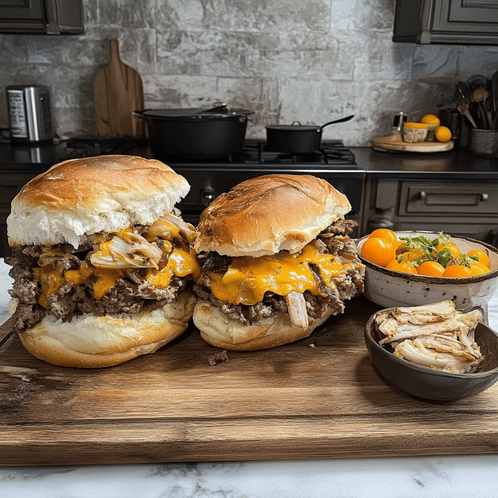 - Assemble sandwiches: Layer shredded beef on hoagie rolls, top with cheddar cheese, and melt under the broiler or with the beef’s heat.
