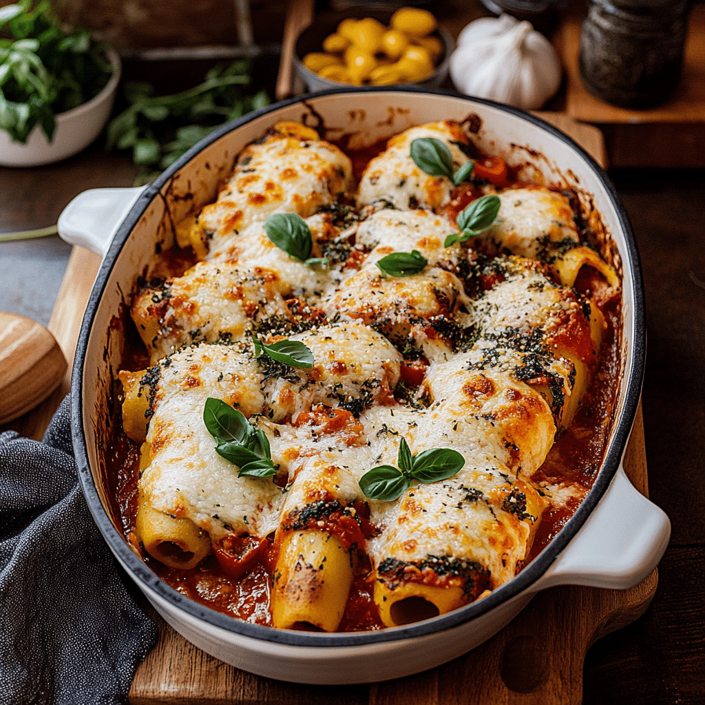 - Bake: Cover with remaining sauce, sprinkle mozzarella and Parmesan, and bake 25–30 minutes until golden and bubbly.