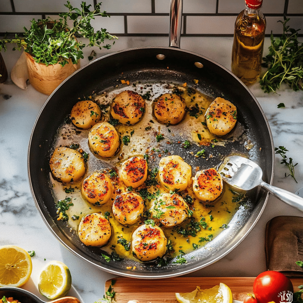 Garlic Butter Scallops are a restaurant-quality seafood dish made at home in under 10 minutes. With a golden sear, rich garlic butter sauce, and fresh lemon, these scallops are perfect for elegant dinners or quick weeknight meals.