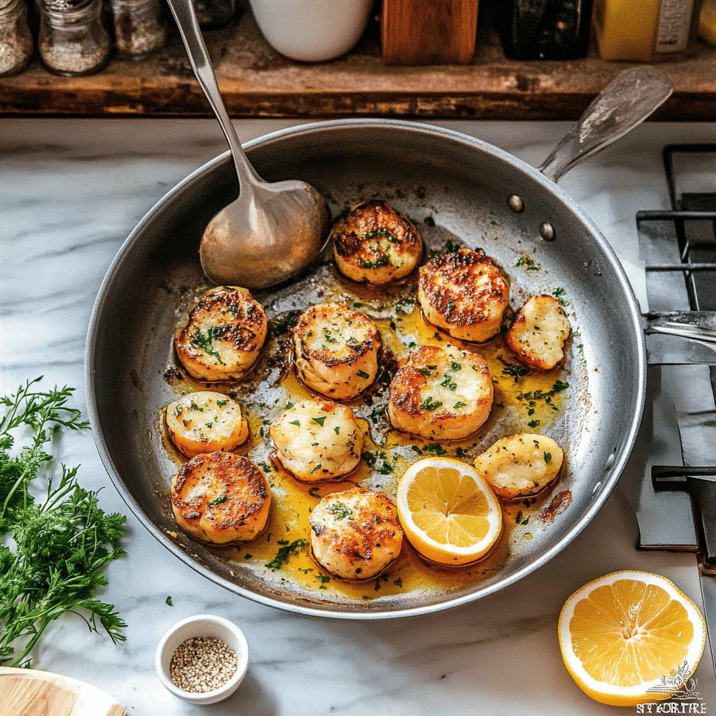 - Finish: Squeeze lemon juice over scallops and garnish with parsley.