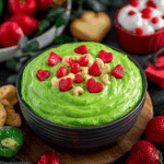 Grinch Dip is a sweet, creamy, no-bake dessert dip that’s perfect for Christmas parties and kids’ gatherings. With its festive green color, red heart sprinkles, and fluffy pudding-cream base, this holiday treat captures the playful spirit of The Grinch in every bite.