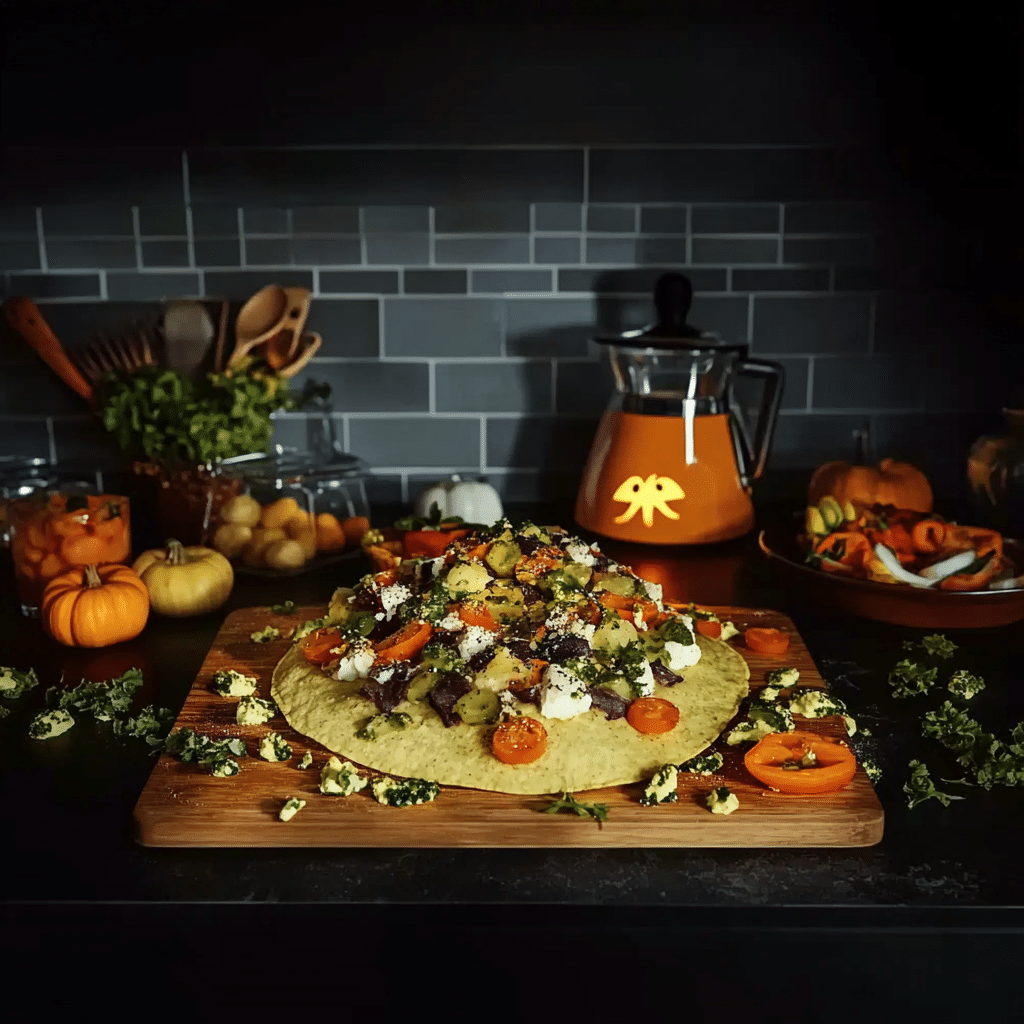 Themed nachos aren’t just tasty—they’re visually striking, making them perfect for a Pelottava Halloween spread where presentation is just as important as flavor.