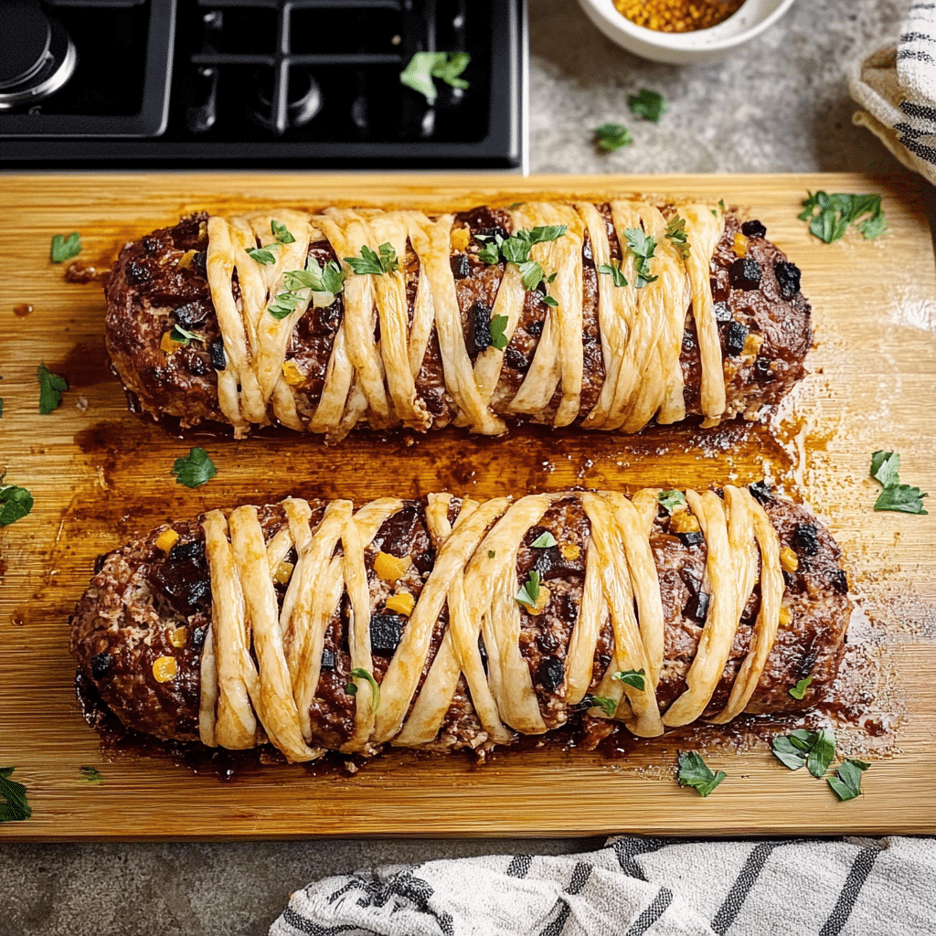 In conclusion, Mummy Meatloaf is more than just a fun Halloween recipe — it’s a hearty, comforting main dish that everyone at the table will enjoy. Its playful presentation makes it a hit with kids, while the rich flavors make it satisfying for adults. Whether you’re creating new family traditions or just adding a twist to your holiday dinner, this recipe is guaranteed to become a Halloween staple.