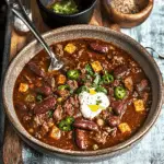 If you’re a fan of chorizo sausage recipes, this is one of the most creative ways to showcase that distinctive flavor. Unlike ground beef chili, the short ribs here are braised low and slow until fall-apart tender, making it feel like a gourmet dish.