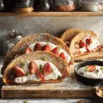 Fun, crispy, and fruity, these Strawberry Crunch Cheesecake Tacos feature homemade cinnamon-sugar taco shells filled with creamy cheesecake filling, fresh strawberries, and a nostalgic cookie-strawberry crumble topping. A show-stopping sweet tacos dessert perfect for parties or family treats.
