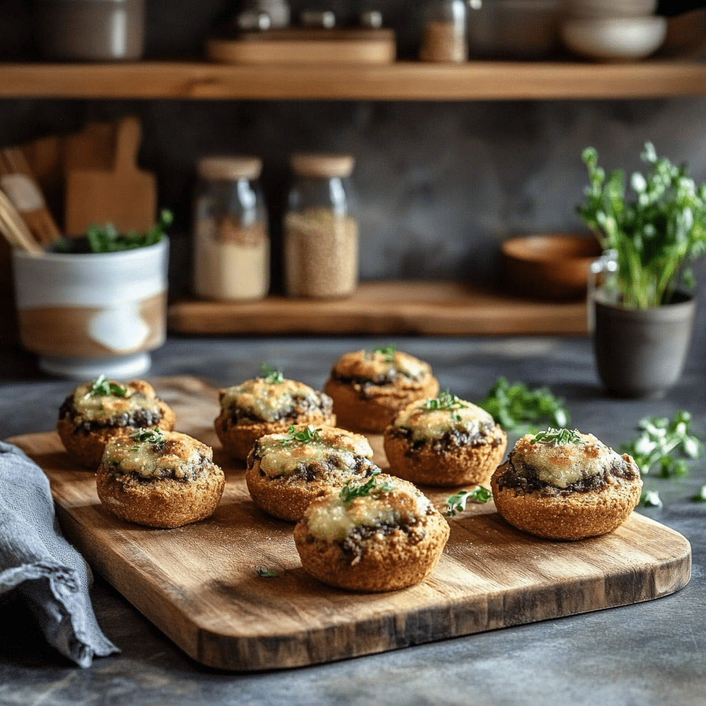 Arrange mushrooms on tiered trays or themed platters. Pair them with Ciabatta Bread or Garlic Rosemary Focaccia Muffins for a rustic vibe.